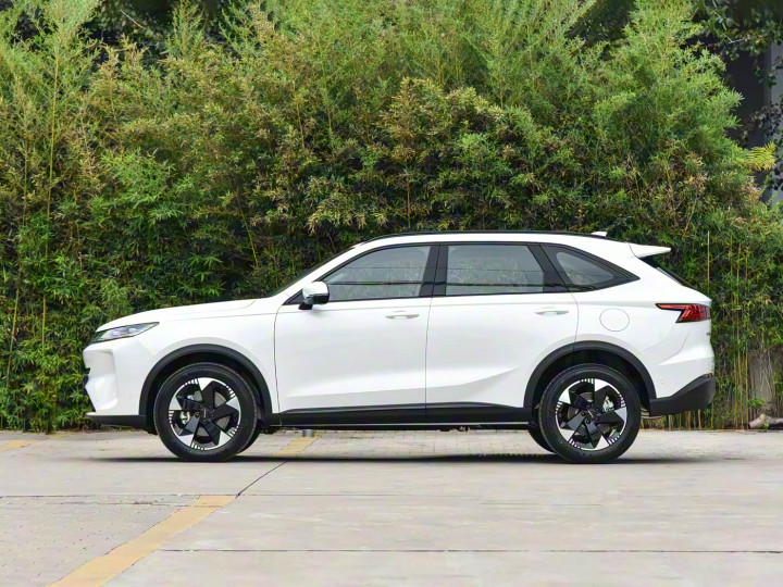 再来看车身侧面部分,车身尺寸达到 4800×1895×1730mm,2810mm 轴距较普通 H6 增加 150mm,正式迈入中型 SUV 阵营。侧面最亮眼的是 “流星破空” 肩线,从前灯一气呵成延伸至尾灯,配合悬浮式车顶设计,视觉上拉伸车身比例,有效弱化加长后的臃肿感。19 英寸多辐式轮毂为中高配专属,银黑双色涂装提升精致度,轮胎规格兼顾抓地力与滤震需求,206mm 离地间隙可轻松应对城市积水与非铺装路面。车门采用大开口角度设计,配合近乎纯平的后排地台,老人弯腰上车、儿童跨坐入座更便捷,细节处彰显家用属性。车身提供雪域白、墨石黑等多种配色,其中全新星钻灰车漆在不同光线下呈现细腻光泽,质感远超同价位车型。